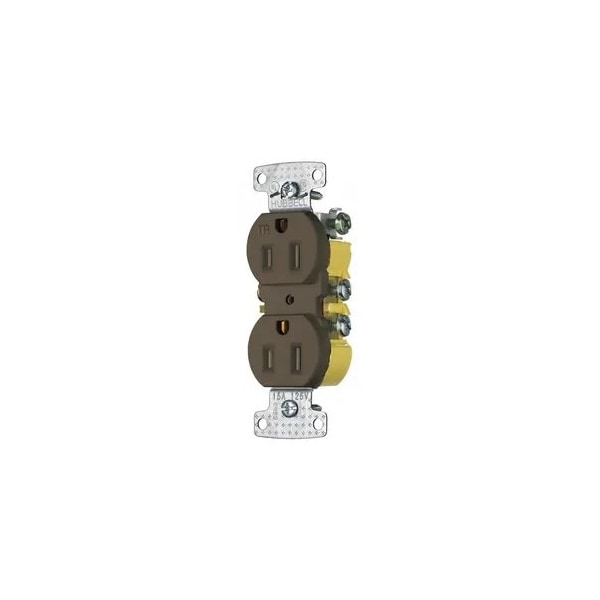 Receptacle, Connection Orientation Straight, Cover Type No Cover, Current Rating 15 A, GFCI No, Grounding Grounded, Hazardous Location Specification Not Applicable, Housing Color Brown, Housing Material Thermoplastic, Mount Type Surface, NEMA Enclosure Rating 1, NEMA Receptacle Configuration 5-15R, Number of Gangs 1, Number of Poles 2, Number of Wires 3, Phase Single, Polarized Yes, Receptacle Type Decorator Duplex, Resistance Properties Tamper Resistant