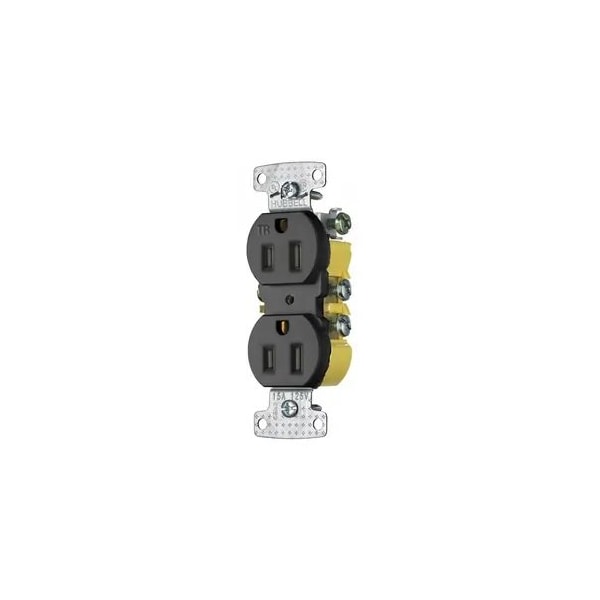 Receptacle, Connection Orientation Straight, Cover Type No Cover, Current Rating 15 A, GFCI No, Grounding Grounded, Hazardous Location Specification Not Applicable, Housing Color Black, Housing Material Thermoplastic, Mount Type Surface, NEMA Enclosure Rating 1, NEMA Receptacle Configuration 5-15R, Number of Gangs 1, Number of Poles 2, Number of Wires 3, Phase Single, Polarized Yes, Receptacle Type Decorator Duplex, Resistance Properties Tamper Resistant
