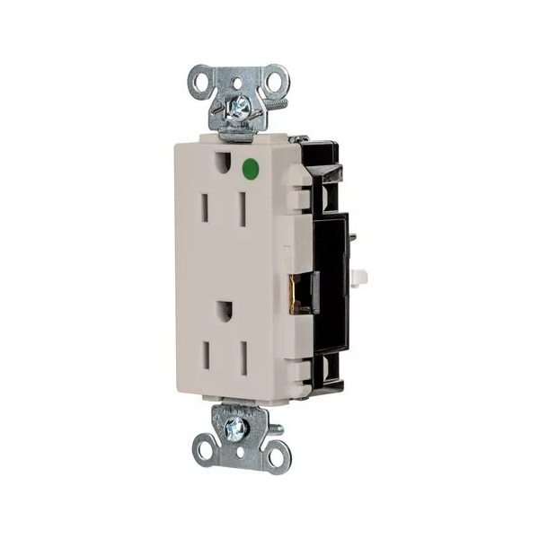 Receptacle, Connection Orientation Straight, Cover Type No Cover, Current Rating 15 A, GFCI No, Grounding Grounded, Hazardous Location Specification Not Applicable, Housing Color Light Almond, Housing Material Thermoplastic, Mount Type Surface, NEMA Enclosure Rating 1, NEMA Receptacle Configuration 5-15R, Number of Gangs 1, Number of Poles 2, Number of Wires 3, Phase Single, Polarized Yes, Receptacle Type Decorator Duplex