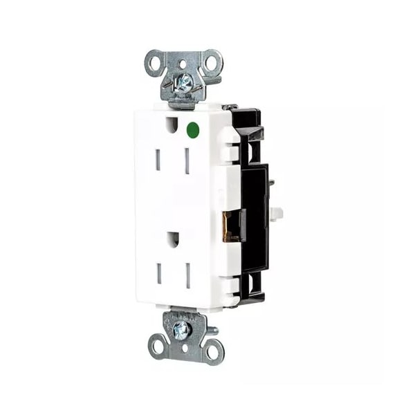 Receptacle, Connection Orientation Straight, Cover Type No Cover, Current Rating 15 A, GFCI No, Grounding Grounded, Hazardous Location Specification Not Applicable, Housing Color White, Housing Material Thermoplastic, Mount Type Surface, NEMA Enclosure Rating 1, NEMA Receptacle Configuration 5-15R, Number of Gangs 1, Number of Poles 2, Number of Wires 3, Phase Single, Polarized Yes, Receptacle Type Decorator Duplex, Resistance Properties Tamper Resistant