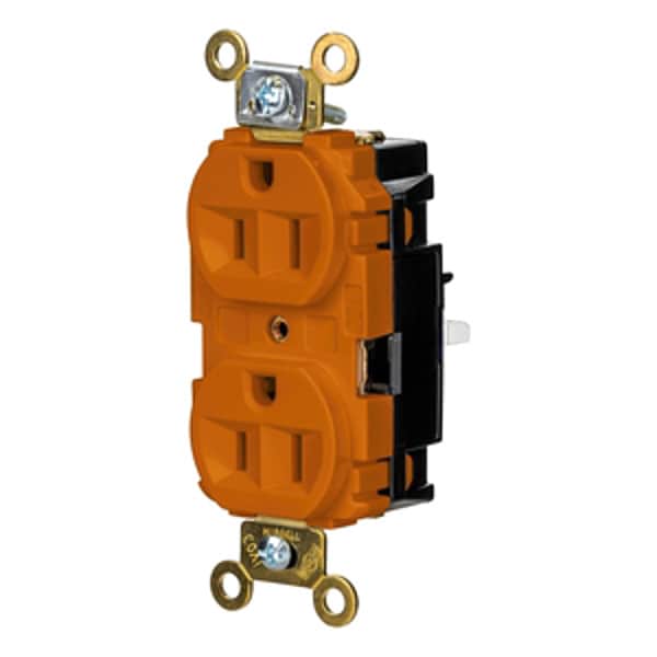 Receptacle, Connection Orientation Straight, Cover Type No Cover, Current Rating 15 A, GFCI No, Grounding Grounded, Hazardous Location Specification Not Applicable, Housing Color Orange, Housing Material Thermoplastic, Mount Type Surface, NEMA Enclosure Rating 1, NEMA Receptacle Configuration 5-15R, Number of Gangs 1, Number of Poles 2, Number of Wires 3, Phase Single, Polarized Yes, Receptacle Type Duplex, Resistance Properties Tamper Resistant