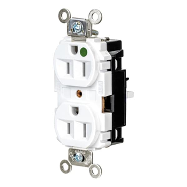 Receptacle, Connection Orientation Straight, Cover Type No Cover, Current Rating 15 A, GFCI No, Grounding Grounded, Hazardous Location Specification Not Applicable, Housing Color White, Housing Material Thermoplastic, Mount Type Surface, NEMA Enclosure Rating 1, NEMA Receptacle Configuration 5-15R, Number of Gangs 1, Number of Poles 2, Number of Wires 3, Phase Single, Polarized Yes, Receptacle Type Duplex, Resistance Properties Chemical Resistant, Corrosion Resistant, Impact Resistant