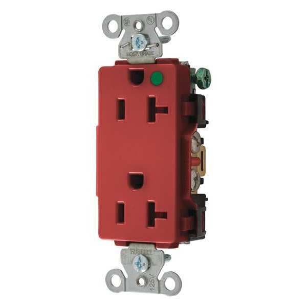 Receptacle, Connection Orientation Straight, Cover Type No Cover, Current Rating 20 A, GFCI No, Grounding Grounded, Housing Color Red, Housing Material Nylon, Mount Type Flush, NEMA Enclosure Rating 1, NEMA Receptacle Configuration 5-20R, Number of Gangs 1, Number of Poles 2, Number of Wires 3, Phase Single, Polarized Yes, Receptacle Type Decorator Duplex, Resistance Properties Impact Resistant, Standards CSA Certified C22.2, Federal Specification W-C-596, NEMA WD-6, UL 498