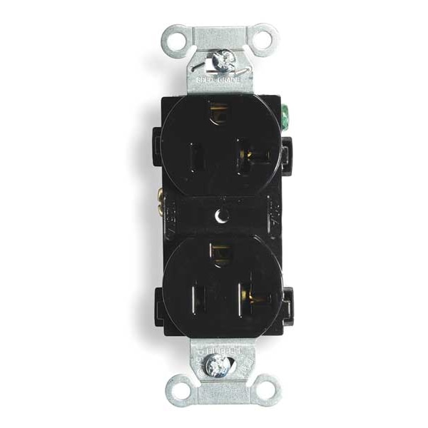 Receptacle, Connection Orientation Straight, Cover Type No Cover, Current Rating 20 A, GFCI No, Grounding Grounded, Housing Color Black, Housing Material Nylon, Mount Type Flush, NEMA Enclosure Rating 1, NEMA Receptacle Configuration 5-20R, Number of Gangs 1, Number of Poles 2, Number of Wires 3, Phase Single, Polarized Yes, Receptacle Type Duplex, Resistance Properties Weather Resistant, Standards CSA Certified C22.2, Federal Specification W-C-596, NEMA WD-6, UL 498, Voltage Rating 125V AC
