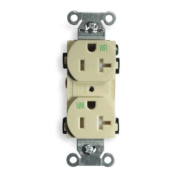 Straight Blade Receptacle, 5-20R, 20 A, 125V AC, 2 Pole, 3 Wire, Flush Mount, Grounded