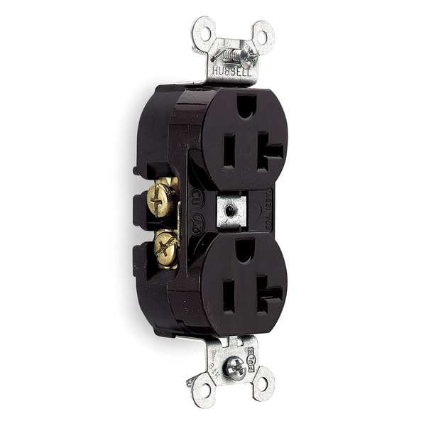 Receptacle, Connection Orientation Straight, Cover Type No Cover, Current Rating 20 A, GFCI No, Grounding Grounded, Housing Color Brown, Housing Material Nylon, Mount Type Flush, NEMA Enclosure Rating 1, NEMA Receptacle Configuration 5-20R, Number of Gangs 1, Number of Poles 2, Number of Wires 3, Phase Single, Polarized Yes, Receptacle Type Duplex, Standards CSA Certified C22.2, Federal Specification W-C-596, NEMA WD-6, UL 498, Voltage Rating 125V AC, Wire Connection Type Screw Terminals