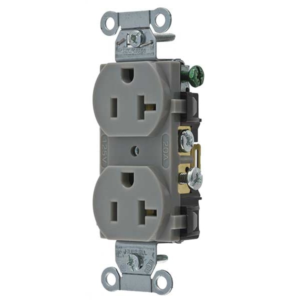 Receptacle, Connection Orientation Straight, Cover Type No Cover, Current Rating 20 A, GFCI No, Grounding Grounded, Housing Color Gray, Housing Material Nylon, Mount Type Flush, NEMA Enclosure Rating 1, NEMA Receptacle Configuration 5-20R, Number of Gangs 1, Number of Poles 2, Number of Wires 3, Phase Single, Polarized Yes, Receptacle Type Duplex, Standards CSA Certified C22.2, Federal Specification W-C-596, NEMA WD-6, UL 498, Voltage Rating 125V AC, Wire Connection Type Screw Terminals