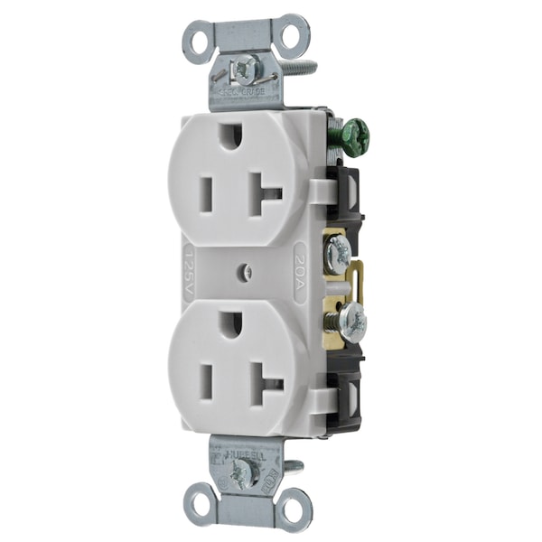 Hubbell Wiring Device Kellems, Straight Blade Devices, Receptacles,Duplex, Commercial Grade, 2-Pole 3-Wire Grounding, 20A 125V, 5-20R,Office White, Single Pac k