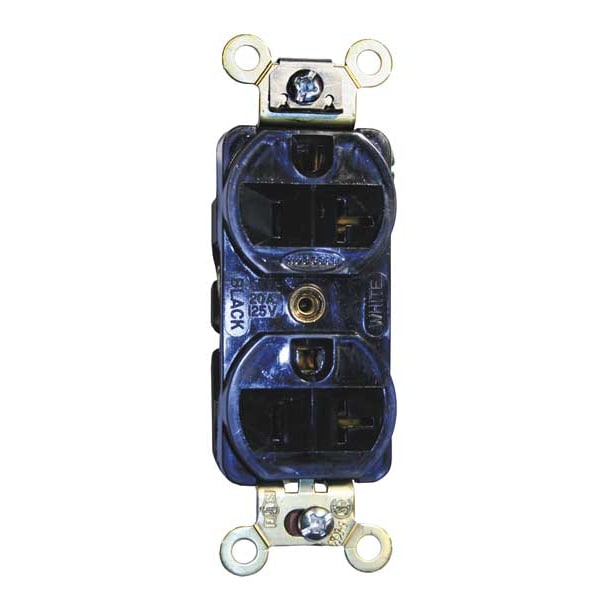 Receptacle, Connection Orientation Straight, Cover Type No Cover, Current Rating 20 A, GFCI No, Grounding Grounded, Housing Color Black, Housing Material Nylon, Mount Type Flush, NEMA Enclosure Rating 1, NEMA Receptacle Configuration 5-20R, Number of Gangs 1, Number of Poles 2, Number of Wires 3, Phase Single, Polarized Yes, Receptacle Type Duplex, Standards CSA Certified C22.2 No. 42 File 285, Federal Specification W-C-596G, NEMA WD-6, UL 498 File E2186, Voltage Rating 125V AC