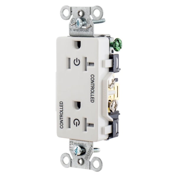 Hubbell Wiring Device Kellems, Straight Blade Devices, Receptacles,Decorator Duplex, Load Controled, 20A 125V, 2-Pole 3-Wire Grounding, 5-20R, Back and Side Wired, White