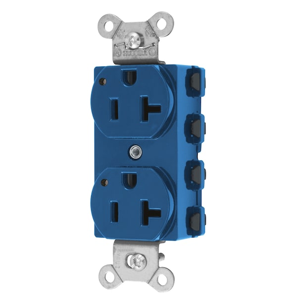 Hubbell Wiring Device Kellems, Straight Blade Devices, Receptacles,Duplex, SNAPConnect 2, LED Indicator, 20A 125V, 2-Pole 3-Wire Grounding,5-20R, Blue