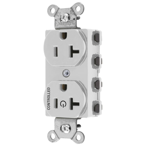 Hubbell Wiring Device Kellems, Straight Blade Devices, Receptacle,Duplex, SNAPConnect, 1/2 Controlled, 20A 125V, 2-Pole 3-Wire Grounding,5-20R, White