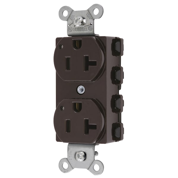 Hubbell Wiring Device Kellems, Straight Blade Devices, Receptacles,Duplex, SNAPConnect, 20A 125V, 2-Pole 3-Wire Grounding, 5-20R, With LEDIndicator, Brown