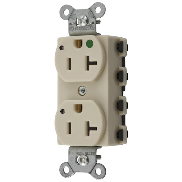 Hubbell Wiring Device Kellems, Straight Blade Devices, Receptacles,Duplex, SNAPConnect 2, Hospital Grade, LED Indicator, 15A 125V, 2-Pole3-Wire Grounding, 5-15R, Ivory