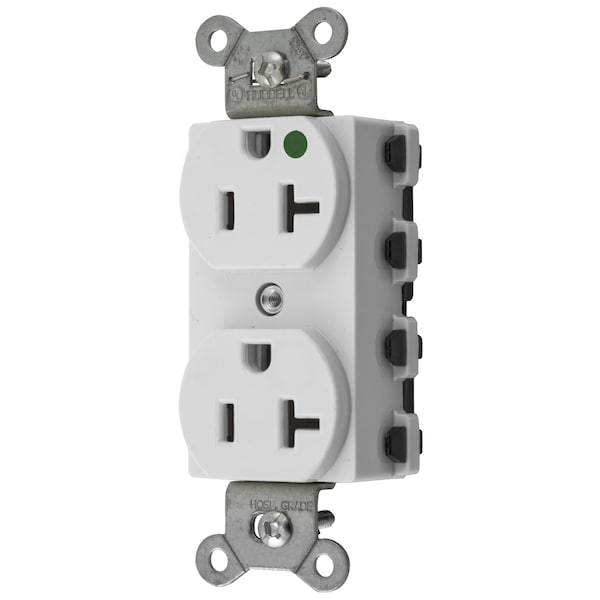 Hubbell Wiring Device Kellems, Straight Blade Devices, Receptacles,Duplex, SNAPConnect 2, Hospital Grade, 2-Pole 3-Wire Grounding, 20A125V, 5-20R, White, USA