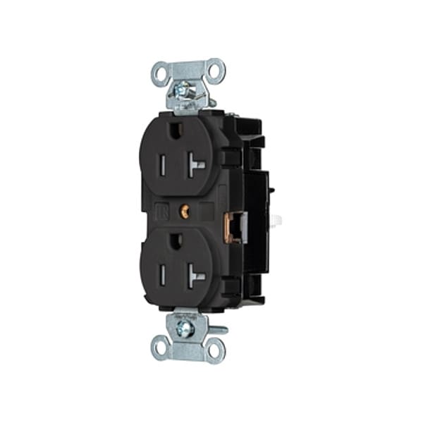 Receptacle, Connection Orientation Straight, Cover Type No Cover, Current Rating 20 A, GFCI No, Grounding Grounded, Hazardous Location Specification Not Applicable, Housing Color Black, Housing Material Thermoplastic, Mount Type Surface, NEMA Enclosure Rating 1, NEMA Receptacle Configuration 5-20R, Number of Gangs 1, Number of Poles 2, Number of Wires 3, Phase Single, Polarized Yes, Receptacle Type Duplex, Resistance Properties Tamper Resistant