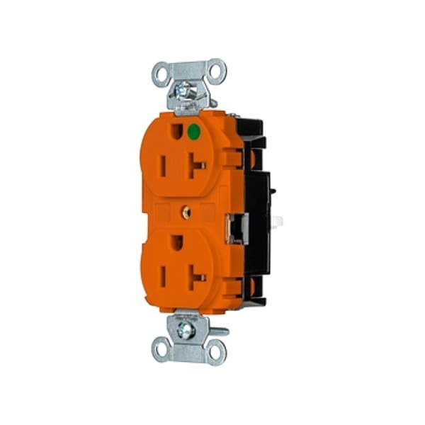 Receptacle, Connection Orientation Straight, Cover Type No Cover, Current Rating 20 A, GFCI No, Grounding Grounded, Hazardous Location Specification Not Applicable, Housing Color Orange, Housing Material Thermoplastic, Mount Type Surface, NEMA Enclosure Rating 1, NEMA Receptacle Configuration 5-20R, Number of Gangs 1, Number of Poles 2, Number of Wires 3, Phase Single, Polarized Yes, Receptacle Type Duplex, Resistance Properties Tamper Resistant