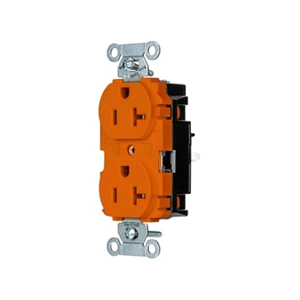 Receptacle, Connection Orientation Straight, Cover Type No Cover, Current Rating 20 A, GFCI No, Grounding Grounded, Hazardous Location Specification Not Applicable, Housing Color Orange, Housing Material Thermoplastic, Mount Type Surface, NEMA Enclosure Rating 1, NEMA Receptacle Configuration 5-20R, Number of Gangs 1, Number of Poles 2, Number of Wires 3, Phase Single, Polarized Yes, Receptacle Type Duplex, Resistance Properties Tamper Resistant