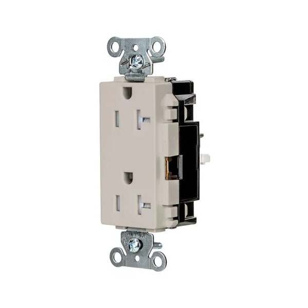 Receptacle, Connection Orientation Straight, Cover Type No Cover, Current Rating 20 A, GFCI No, Grounding Grounded, Hazardous Location Specification Not Applicable, Housing Color Light Almond, Housing Material Thermoplastic, Mount Type Surface, NEMA Enclosure Rating 1, NEMA Receptacle Configuration 5-20R, Number of Gangs 1, Number of Poles 2, Number of Wires 3, Phase Single, Polarized Yes, Receptacle Type Decorator Duplex, Resistance Properties Tamper Resistant