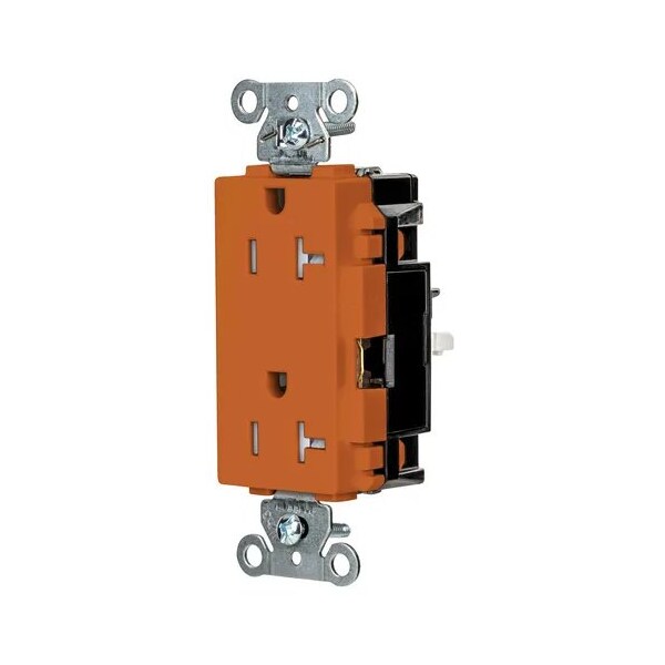 Receptacle, Connection Orientation Straight, Cover Type No Cover, Current Rating 20 A, GFCI No, Grounding Grounded, Hazardous Location Specification Not Applicable, Housing Color Orange, Housing Material Thermoplastic, Mount Type Surface, NEMA Enclosure Rating 1, NEMA Receptacle Configuration 5-20R, Number of Gangs 1, Number of Poles 2, Number of Wires 3, Phase Single, Polarized Yes, Receptacle Type Decorator Duplex, Resistance Properties Tamper Resistant