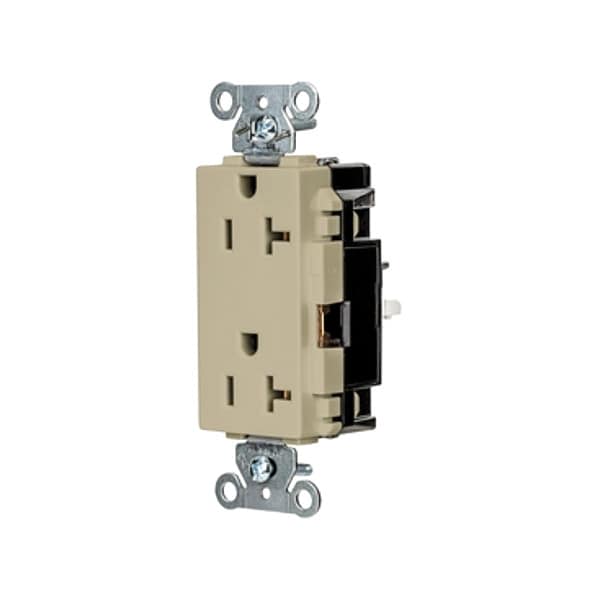 Receptacle, Connection Orientation Straight, Cover Type No Cover, Current Rating 20 A, GFCI No, Grounding Grounded, Hazardous Location Specification Not Applicable, Housing Color Ivory, Housing Material Thermoplastic, Mount Type Surface, NEMA Enclosure Rating 1, NEMA Receptacle Configuration 5-20R, Number of Gangs 1, Number of Poles 2, Number of Wires 3, Phase Single, Polarized Yes, Receptacle Type Decorator Duplex, Resistance Properties Tamper Resistant