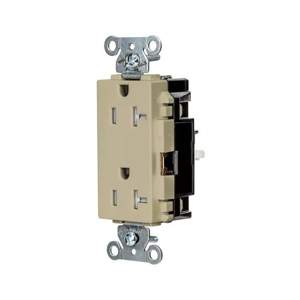 Receptacle, Connection Orientation Straight, Cover Type No Cover, Current Rating 20 A, GFCI No, Grounding Grounded, Hazardous Location Specification Not Applicable, Housing Color Ivory, Housing Material Thermoplastic, Mount Type Surface, NEMA Enclosure Rating 1, NEMA Receptacle Configuration 5-20R, Number of Gangs 1, Number of Poles 2, Number of Wires 3, Phase Single, Polarized Yes, Receptacle Type Decorator Duplex, Resistance Properties Tamper Resistant