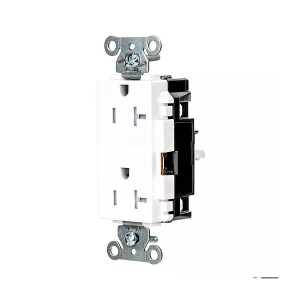 Receptacle, Connection Orientation Straight, Cover Type No Cover, Current Rating 20 A, GFCI No, Grounding Grounded, Hazardous Location Specification Not Applicable, Housing Color White, Housing Material Thermoplastic, Mount Type Surface, NEMA Enclosure Rating 1, NEMA Receptacle Configuration 5-20R, Number of Gangs 1, Number of Poles 2, Number of Wires 3, Phase Single, Polarized Yes, Receptacle Type Decorator Duplex, Resistance Properties Tamper Resistant