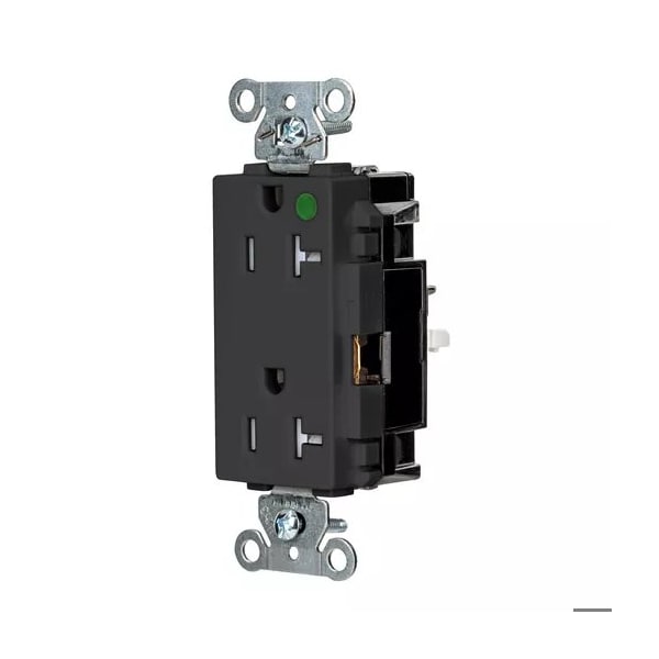 Receptacle, Connection Orientation Straight, Cover Type No Cover, Current Rating 20 A, GFCI No, Grounding Grounded, Hazardous Location Specification Not Applicable, Housing Color Black, Housing Material Thermoplastic, Mount Type Surface, NEMA Enclosure Rating 1, NEMA Receptacle Configuration 5-20R, Number of Gangs 1, Number of Poles 2, Number of Wires 3, Phase Single, Polarized Yes, Receptacle Type Decorator Duplex, Resistance Properties Tamper Resistant