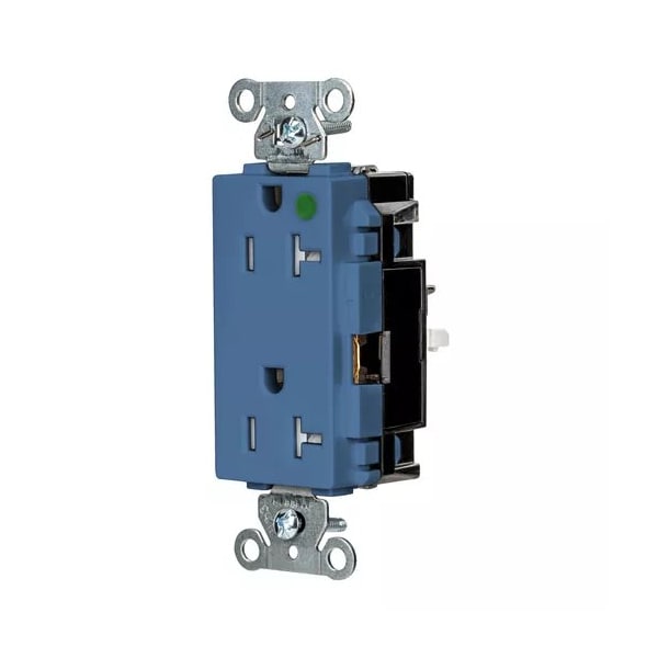 Receptacle, Connection Orientation Straight, Cover Type No Cover, Current Rating 20 A, GFCI No, Grounding Grounded, Hazardous Location Specification Not Applicable, Housing Color Blue, Housing Material Thermoplastic, Mount Type Surface, NEMA Enclosure Rating 1, NEMA Receptacle Configuration 5-20R, Number of Gangs 1, Number of Poles 2, Number of Wires 3, Phase Single, Polarized Yes, Receptacle Type Decorator Duplex, Resistance Properties Tamper Resistant