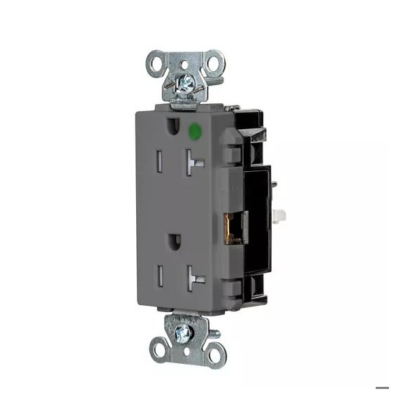 Receptacle, Connection Orientation Straight, Cover Type No Cover, Current Rating 20 A, GFCI No, Grounding Grounded, Hazardous Location Specification Not Applicable, Housing Color Gray, Housing Material Thermoplastic, Mount Type Surface, NEMA Enclosure Rating 1, NEMA Receptacle Configuration 5-20R, Number of Gangs 1, Number of Poles 2, Number of Wires 3, Phase Single, Polarized Yes, Receptacle Type Decorator Duplex, Resistance Properties Tamper Resistant