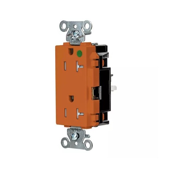 Receptacle, Connection Orientation Straight, Cover Type No Cover, Current Rating 20 A, GFCI No, Grounding Grounded, Hazardous Location Specification Not Applicable, Housing Color Orange, Housing Material Thermoplastic, Mount Type Surface, NEMA Enclosure Rating 1, NEMA Receptacle Configuration 5-20R, Number of Gangs 1, Number of Poles 2, Number of Wires 3, Phase Single, Polarized Yes, Receptacle Type Decorator Duplex, Resistance Properties Tamper Resistant