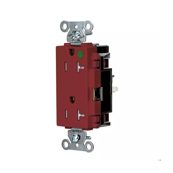 Receptacle, Connection Orientation Straight, Cover Type No Cover, Current Rating 20 A, GFCI No, Grounding Grounded, Hazardous Location Specification Not Applicable, Housing Color Red, Housing Material Thermoplastic, Mount Type Surface, NEMA Enclosure Rating 1, NEMA Receptacle Configuration 5-20R, Number of Gangs 1, Number of Poles 2, Number of Wires 3, Phase Single, Polarized Yes, Receptacle Type Decorator Duplex, Resistance Properties Tamper Resistant