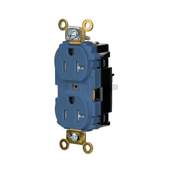 Receptacle, Connection Orientation Straight, Cover Type No Cover, Current Rating 20 A, GFCI No, Grounding Grounded, Hazardous Location Specification Not Applicable, Housing Color Blue, Housing Material Thermoplastic, Mount Type Surface, NEMA Enclosure Rating 1, NEMA Receptacle Configuration 5-20R, Number of Gangs 1, Number of Poles 2, Number of Wires 3, Phase Single, Polarized Yes, Receptacle Type Duplex, Resistance Properties Tamper Resistant