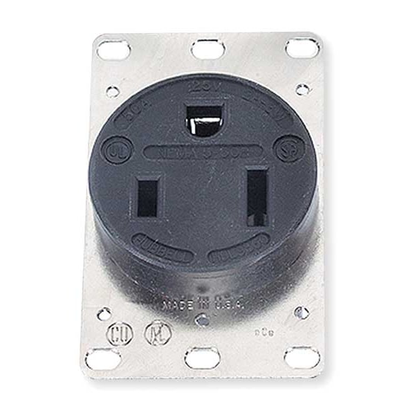 Receptacle, Connection Orientation Straight, Cover Type No Cover, Current Rating 50 A, GFCI No, Grounding Grounded, Housing Color Black, Housing Material Composite, Thermoplastic, Mount Type Flush, NEMA Enclosure Rating 1, NEMA Receptacle Configuration 5-50R, Number of Gangs 1, Number of Poles 2, Number of Wires 3, Phase Single, Polarized Yes, Receptacle Type Single, Standards CSA Certified, NEMA WD-6, UL E2186, Voltage Rating 125V AC, Wire Connection Type Screw Terminals