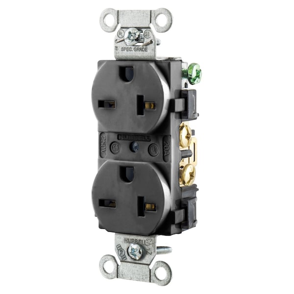 Hubbell Wiring Device Kellems, Straight Blade Devices, DuplexReceptacle, Hubbell-PRO, Finder Groove Face, 20A 250V, 2-Pole 3-WireGrounding, 6-20R, Black