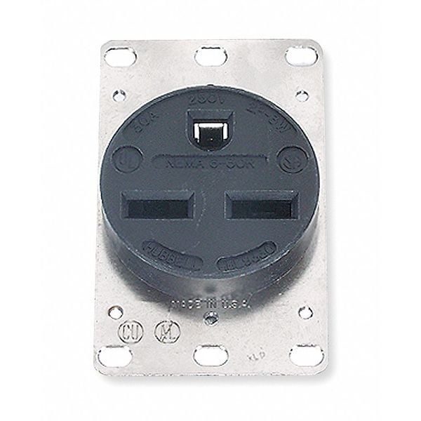Receptacle, Connection Orientation Straight, Cover Type No Cover, Current Rating 30 A, GFCI No, Grounding Grounded, Housing Color Black, Housing Material Composite, Thermoplastic, Mount Type Flush, NEMA Enclosure Rating 1, NEMA Receptacle Configuration 6-30R, Number of Gangs 1, Number of Poles 2, Number of Wires 3, Phase Single, Polarized Yes, Receptacle Type Single, Standards CSA Certified, NEMA WD-6, UL E2186, Voltage Rating 250V AC, Wire Connection Type Screw Terminals