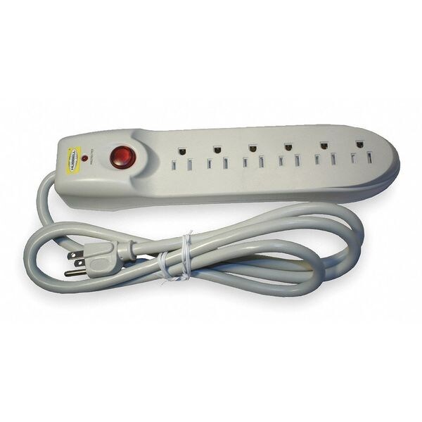 Hubbell Wiring Device-Kellems Surge Protector, 15A, 6 Outlet, 6 ft, White HBL6PS1050MA