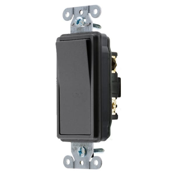 Hubbell Wiring Device Kellems, Switches and Lighting Control, DecoratorSwitch, Specification Grade, Three Way, 20A 120/277V AC, Back andSideWired, Black