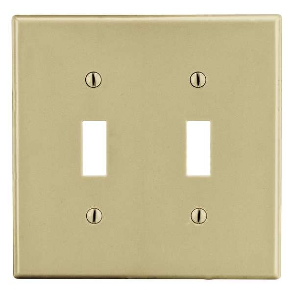 Toggle Switch Wall Plate, Number of Gangs: 2 Plastic, Satin Finish, Ivory