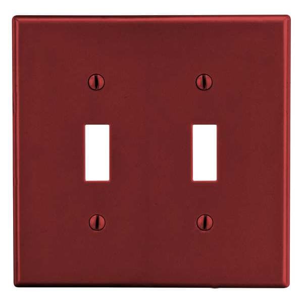 Toggle Switch Wall Plate, Number of Gangs: 2 Plastic, Satin Finish, Red