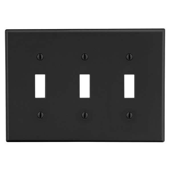 Toggle Switch Wall Plate, Number of Gangs: 3 Plastic, Satin Finish, Black