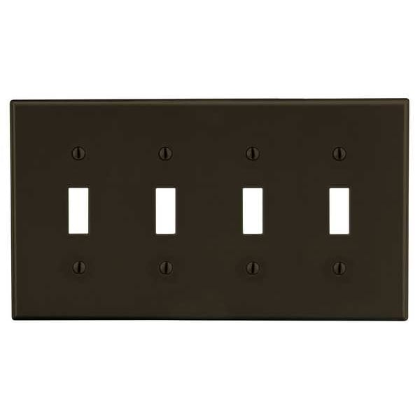 Toggle Switch Wall Plate, Number of Gangs: 4 Plastic, Satin Finish, Brown