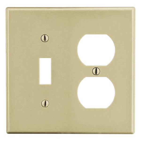 Toggle Switch/Duplex Receptacle Wall Plate, Number of Gangs: 2 Plastic, Satin Finish, Ivory