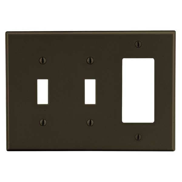 Toggle Switch/Rocker Wall Plate, Number of Gangs: 3 Plastic, Satin Finish, Brown