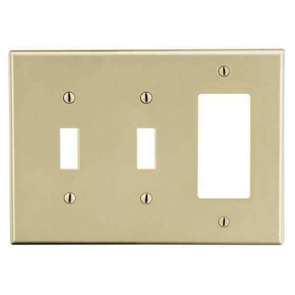 Toggle Switch/Rocker Wall Plate, Number of Gangs: 3 Plastic, Satin Finish, Ivory