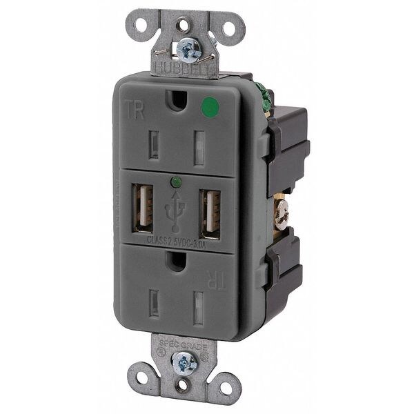 USB Charge Recp, 15A, 125V, 3.8A@5VDC, Gray (Discontinued)