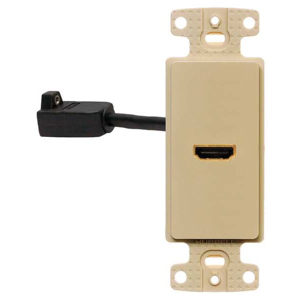 Video Wall Plate and Jack, Product Type Wall Plate and Jack, Wallplate Type Video, Color Ivory, NEMA Enclosure Rating Not Applicable, Compatible Connector Type HDMI, Number of Gangs 1, Outlet Orientation Vertical, Number of Ports 1, Compatible Cable Performance Category Not Applicable, Resistance Properties Not Applicable, Material Plastic, Features Threaded Insert, Includes Mounting Hardware Yes, Manufacturer Warranty Length 1 yr, Standards UL Listed