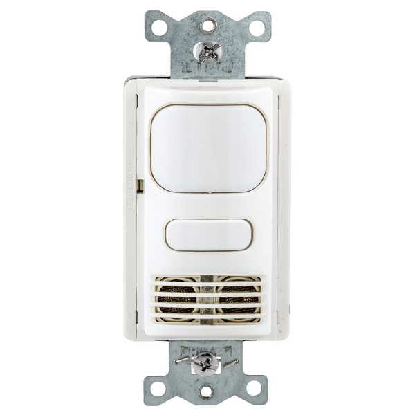 Motion Sensor, Number of Buttons 1, Sensor Operation Occupancy, Vacancy, Compatible with Series Not Applicable, Lighting Technology Fluorescent, Incandescent, Operating Voltage 120 to 277V AC, Sensing Technology Passive Infrared (PIR)/Ultrasonic, Load Rating @ 120V AC 1,000W (Fluorescent), 800W (Incandescent), Communication Method Hard Wired, Maximum Coverage Area 1,000 sq ft, Neutral Required No, Color White, Nightlight No, Dimming Method No Dimming, Dimming Type No Dimming