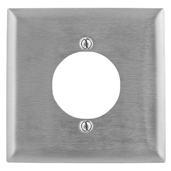 Single Receptacle Wall Plate, Color Silver, Material Stainless Steel, Number of Gangs 2, Finish Smooth