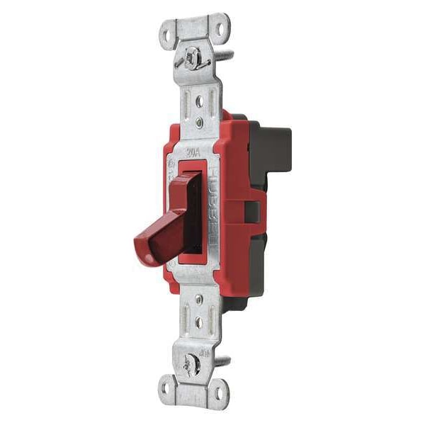 Wall Switch, Color Red, Current Rating 20 A, Switch Function Maintained, Switch Type Single Pole, Voltage Rating 120/277V AC, Wiring Method Back, Horsepower Rating 2 hp, Locking Style Not Applicable, Number of Switches 1, Resistance Properties Impact Resistant, Standards UL Listed, Switch Style Toggle, Wire Connection Type Modular Wiring, Features Automatic Self-Grounding Staple Assures Continuity to Wall Box, Grounding Grounded, Housing Material Thermoplastic, Market Industrial